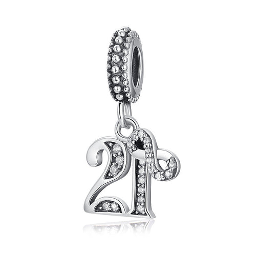 21st Birthday Dangle Charm Hallmarked S925 Sterling Silver